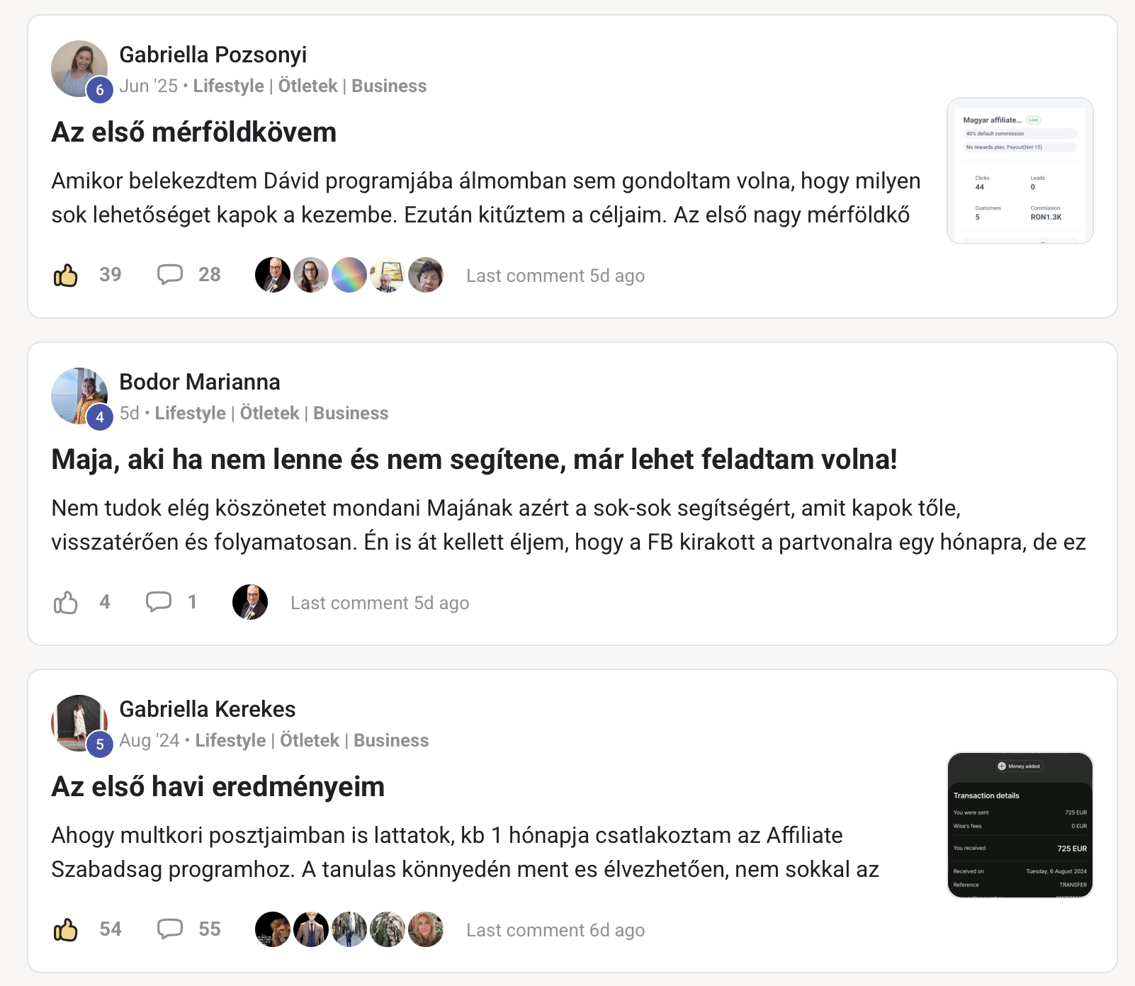 "Ha ezt tanították volna az iskolákban és egyetemeken, sokkal több ember lett volna sikeres, nagyon gyorsan, és nem kellett volna egész életükben valami olyasmit csinálniuk, amit nem szeretnek, csak a megélhetésükért. Köszönöm, Dávid, hogy segítettél megtalálni a számomra legmegfelelőbb pénzkereseti módszert." - Jani